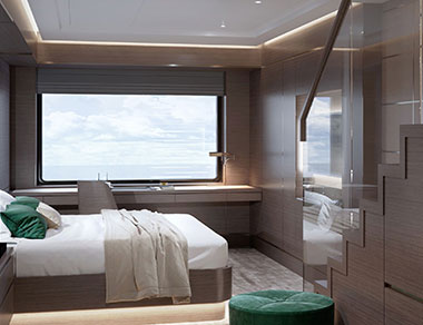 Sitting right at the water’s edge, the Marina offers sun loungers and a generous choice of water toys. Like a private beach with seamless entry into the sea, it’s the go-to spot while at anchor. Just steps above, the Marina Terrace serves handcrafted cocktails and light bites with stunning view