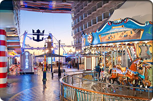 You could call it a wet elevator. It’s also the coolest way to move between Central Park and the Royal Promenade onboard all Oasis Class ships. Sip your favorite cocktail, beer or wine while you enjoy a smooth ride and skylight views at the Rising Tide Bar.